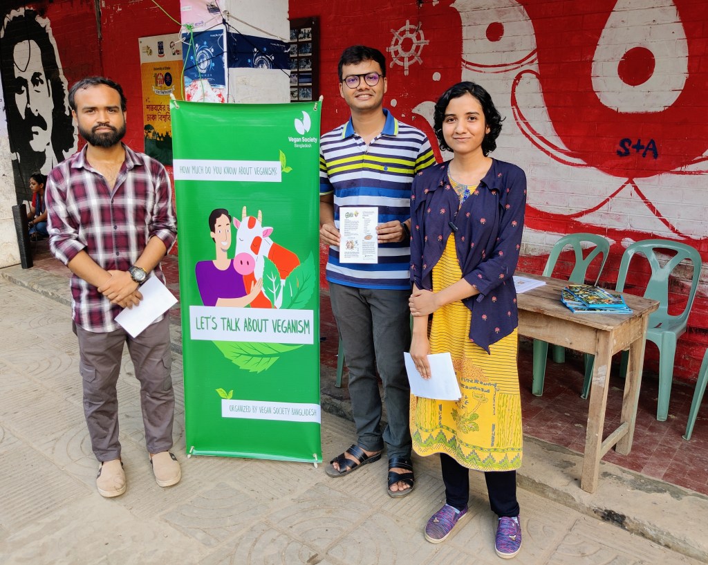 When I was in Dhaka last month, I met a group of students in front of the Teacher-Student Centre. The location was fitting, as the campus of the University of Dhaka has historically often served as the ground zero of progressive movements and new ideas in Bangladesh. Their new idea: veganism. They had just founded the Vegan Society Bangladesh, the first of its kind in the country, and this was their first-ever public event. They brought a table with leaflets, and a banner that asked, “What do you know about veganism?” A fair question! While most people know a good deal about vegetarianism, not least because vegetarianism is a common religious practice among Hindus, veganism is still an unfamiliar concept in Bangladesh.