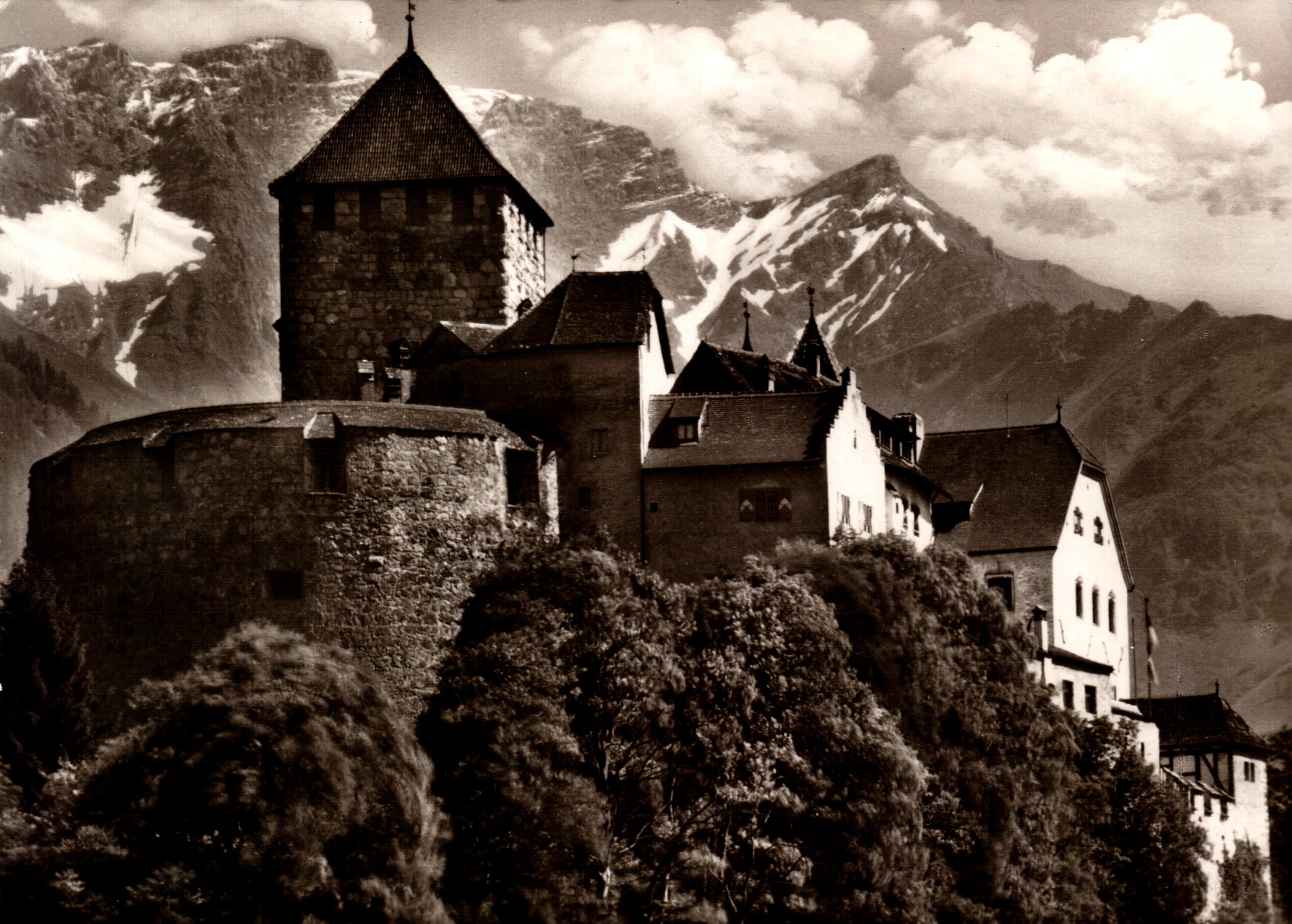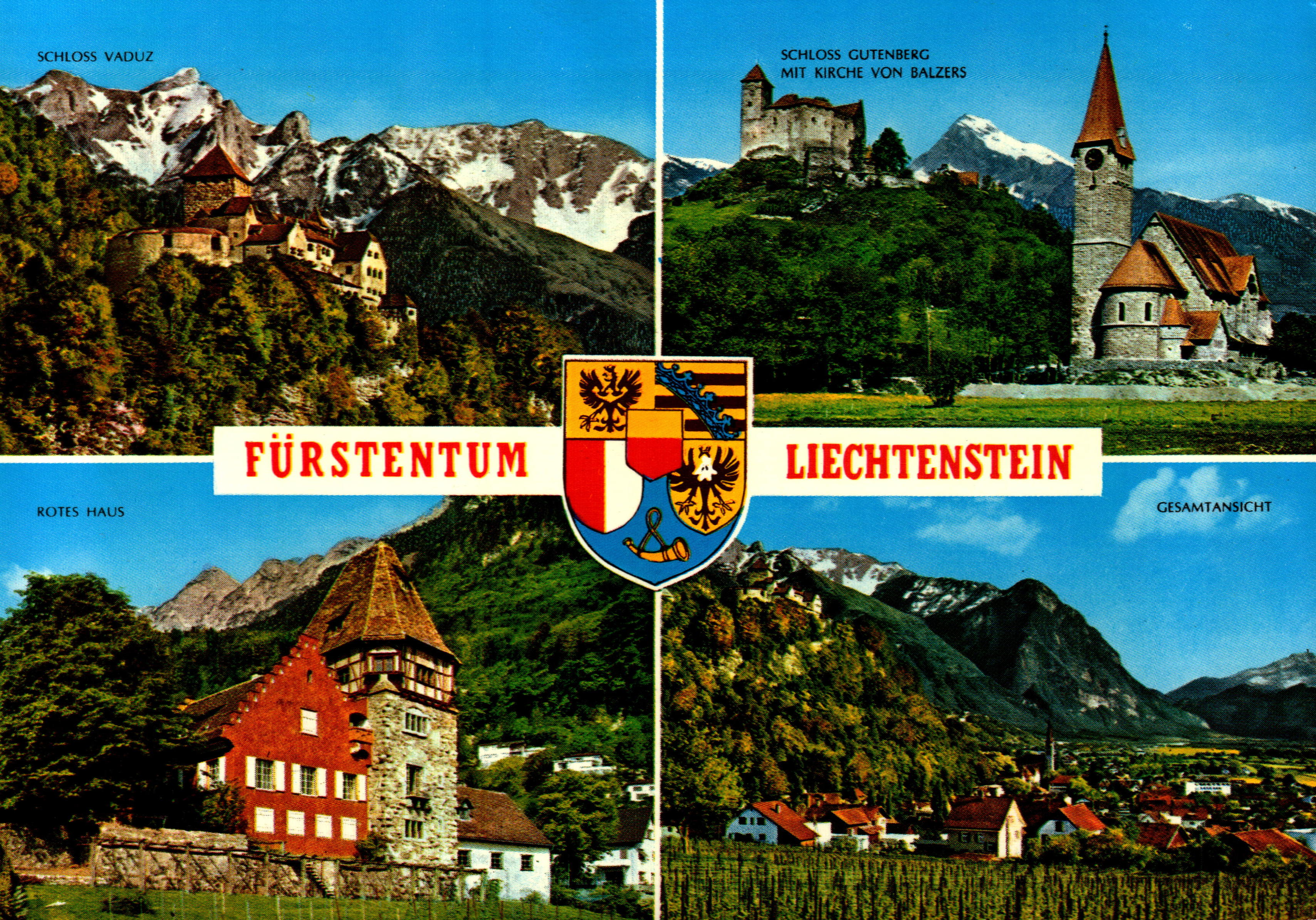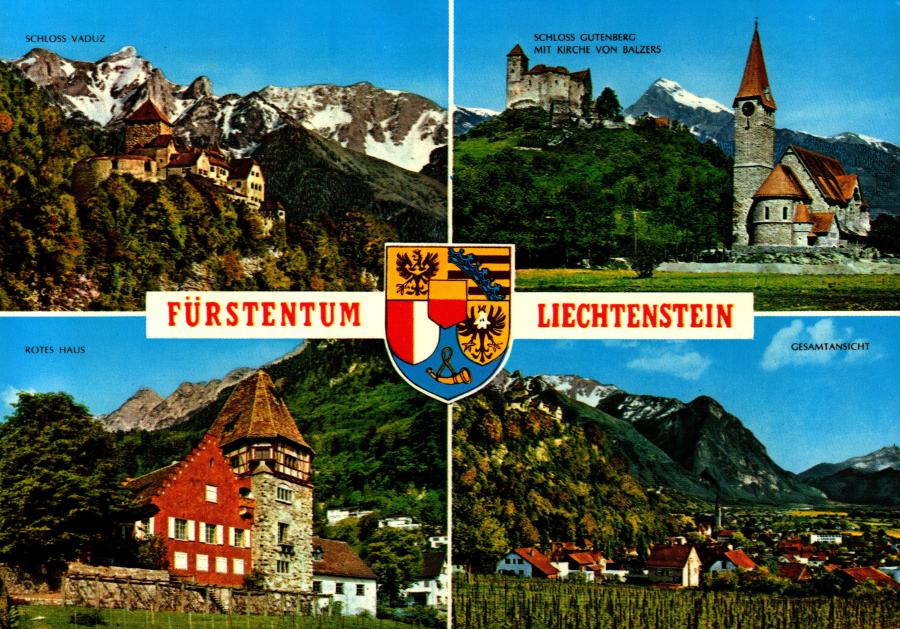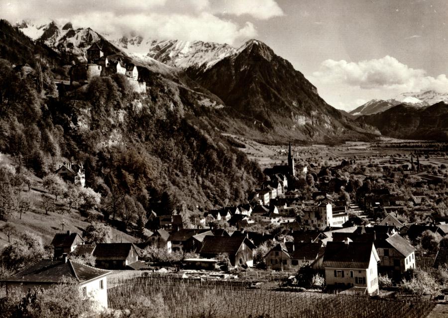 Schloss Vaduz, Schloss Gutenberg mit Kirche von Balzers, Rotes Haus, Gesamtansicht