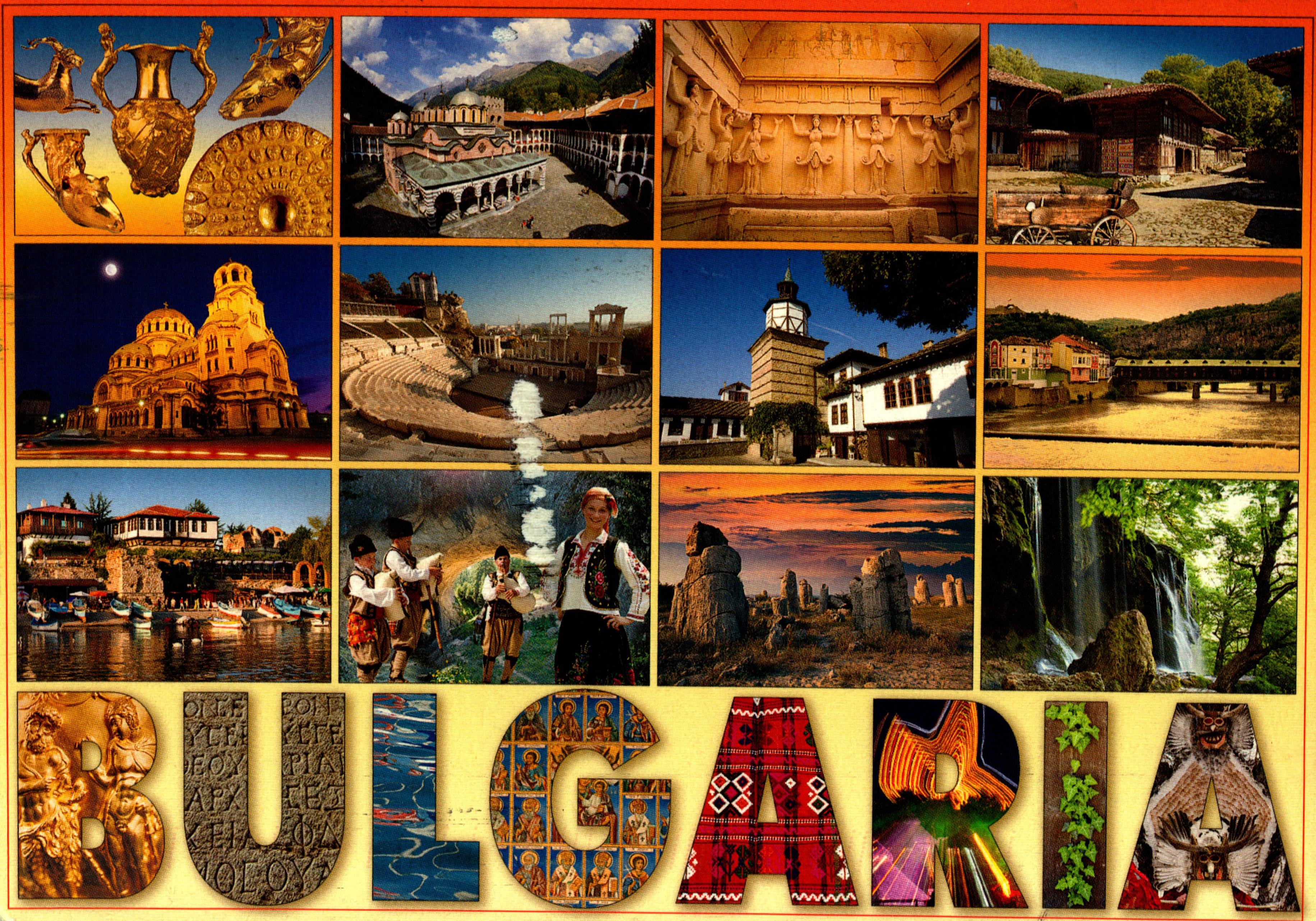 SofiaPanagyurishte Gold Treasure, Rila Monastery, Thracian Tomb Sveshtary, Village of Zheravna, St Alexander Nevski Memorial Church, Antique Theatre, Plovdiv, Tryavna, Covered Bridge, Lovech, Nesebar, Rock bridges, Rhodopes, Stone Forest, Varna, Waterfall Varovitets, Etropole