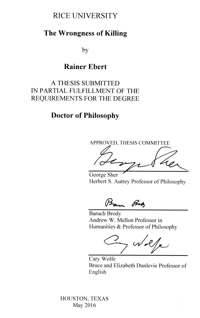 “The Wrongness of Killing,” PhD dissertation, Rice University (2016)